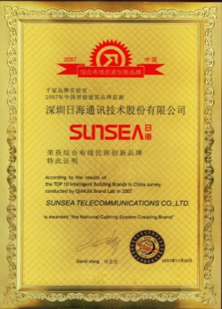 2007年11月29日~30日,米兰电竞公司智能综合布线受邀前往上海光大会展中心酒店,参加由千家网筹办的“2007年第八届中国国际建筑智能化峰会暨颁奖典礼”,获得了“布线民族创新品牌”特别奖项。