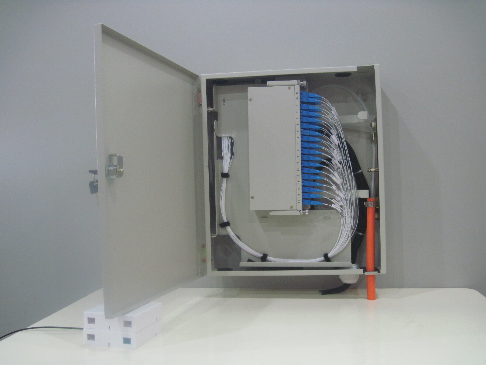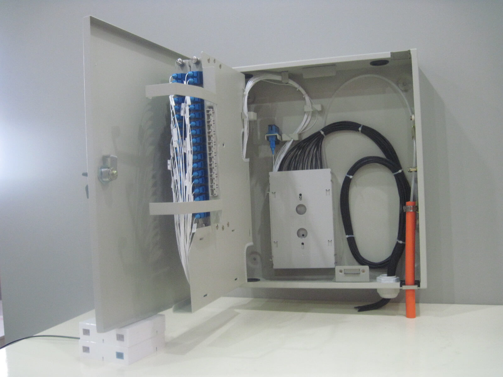 该系列产品适用于光接入点,完成光缆的引入固定、开剥保护,光信号的分路扩容,光纤的熔接、保护、存储及管理。可选钣金结构箱体或非金属结构箱体,支持壁挂与抱杆安装方式。